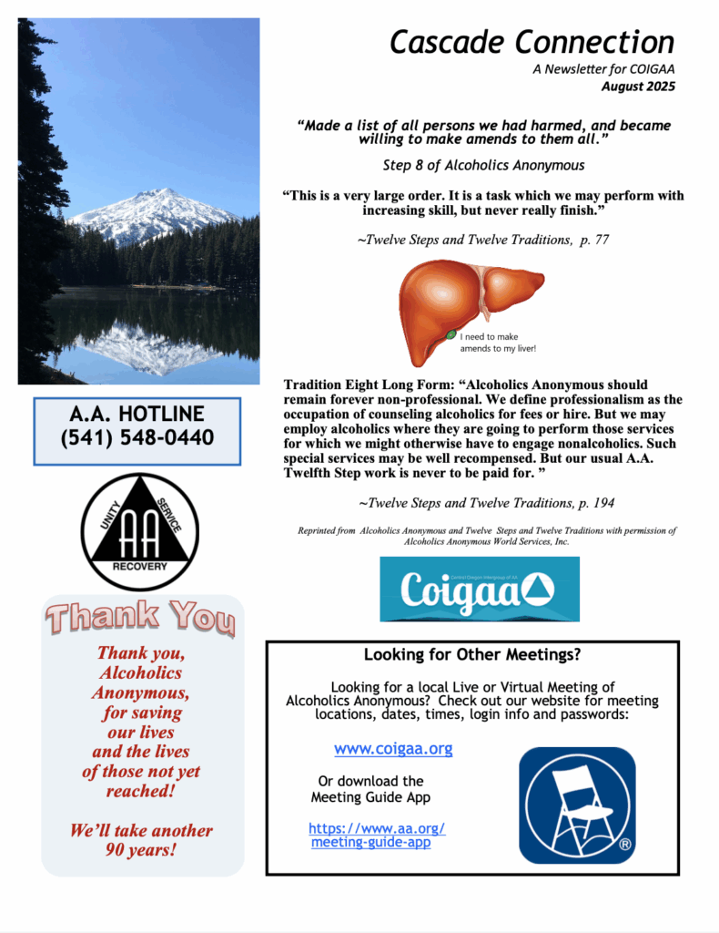 August 2025 COIG Newsletter Is HERE! by COIGAA Admin Download Newsletter Please leave this field empty Stay informed about your AA community with the latest Central Oregon Intergroup announcements sent directly to your inbox. We promise we’ll never spam! Thanks for signing up. Be sure to check your inbox or spam folder to confirm your subscription.