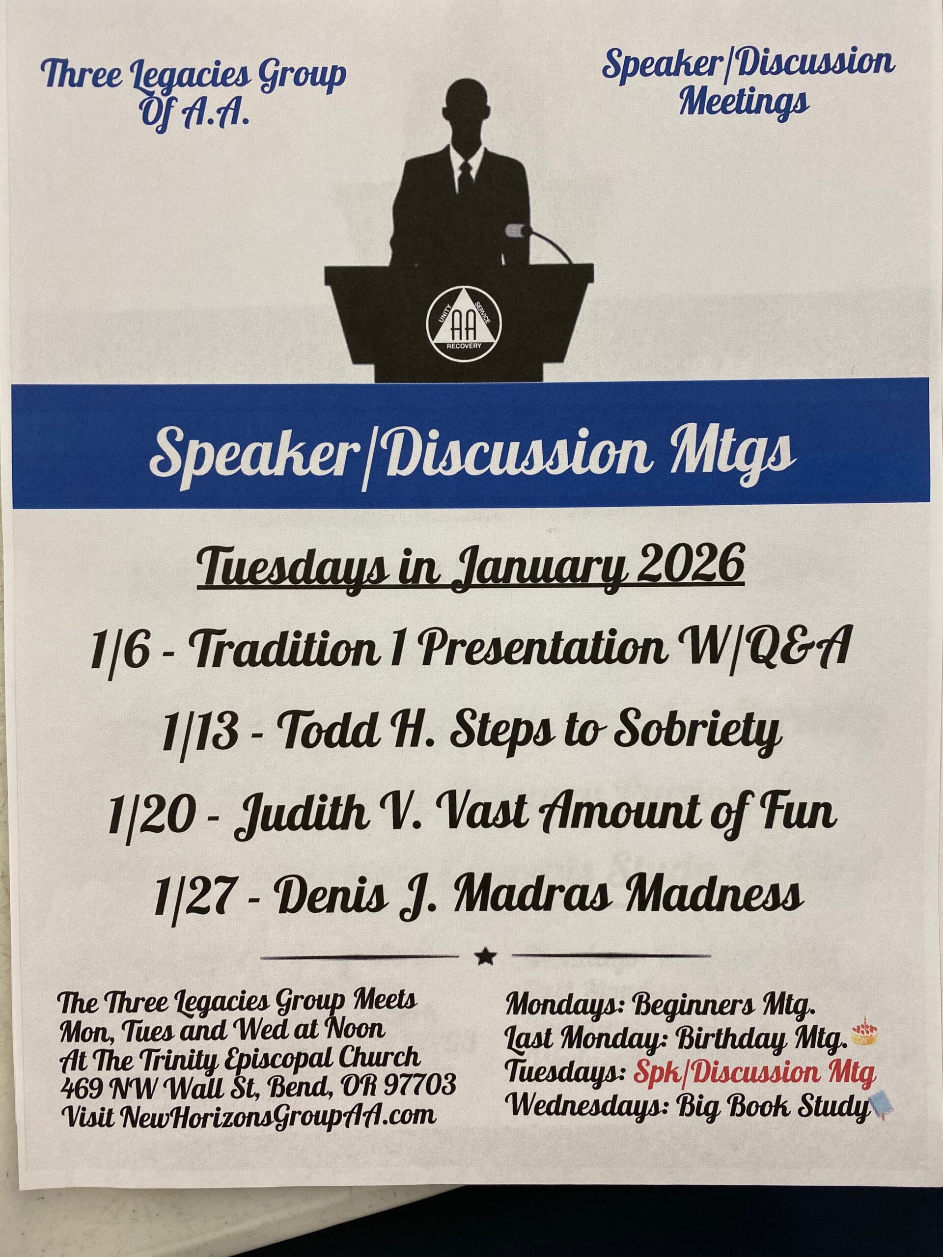 Three Legacies Group of AA – Speakers Announced by COIGAA Admin Download Flyer Please leave this field empty Stay informed about your AA community with the latest Central Oregon Intergroup announcements sent directly to your inbox. We promise we’ll never spam! Thanks for signing up. Be sure to check your inbox or spam folder to confirm your subscription.